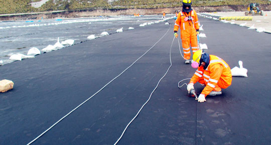 Nuestro servicio se da de acuerdo a los requerimientos técnicos se aplicarán a todos los materiales Geo sintéticos instalados el cual será responsable de la instalación e integridad del material hasta su entrega al Cliente. El compromiso lo asumimos con la estricta selección de nuestro personal y de una dotación de equipos de instalación y control de calidad de primera línea.